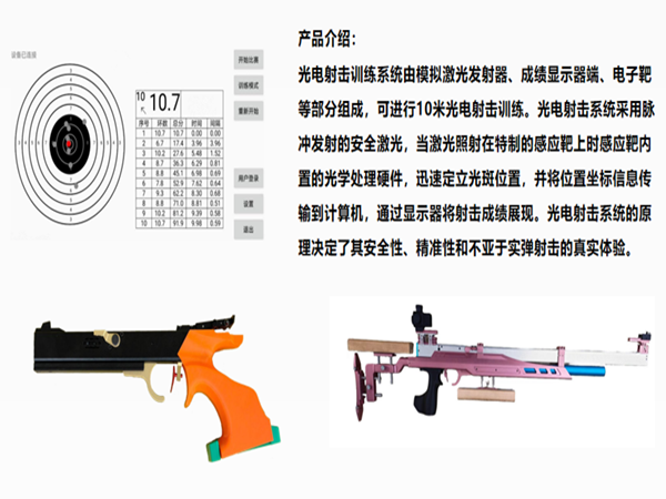 光电射击馆依托激光技术、光电感应设备及大数据分析能力,以安全无实弹、场景可定制、体验具沉浸感的核心优势,打破传统射击运动的场地、安全及门槛限制,广泛应用于专业训练、青少年教育、文旅休闲、团建拓展等多个领域,成为融合科技、体育、教育与娱乐的新型场景载体,适配不同群体的多样化需求。一、专业射击训练与人才培养光电射击馆是专业射击运动的重要训练与人才储备平台,其核心优势在于能精准模拟真实射击场景,同时规避训练的安全风险与高成本问题。场馆普遍采用奥运射击项目同等标准的光电射击系统,通过激光模拟实体子弹轨迹,配合即时反馈系统,可精准捕捉射击动作的细微偏差,结合大数据分析技术,实时生成射击稳定性、环数分布等